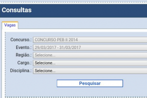 O Sistema GDAE já mostra uma possível data de sessão de escolhas para ingresso de remanescentes do concurso de Professor de Educação Básica II de 2013. A data que está no sistema é de 29/03 a 31/03/2017.