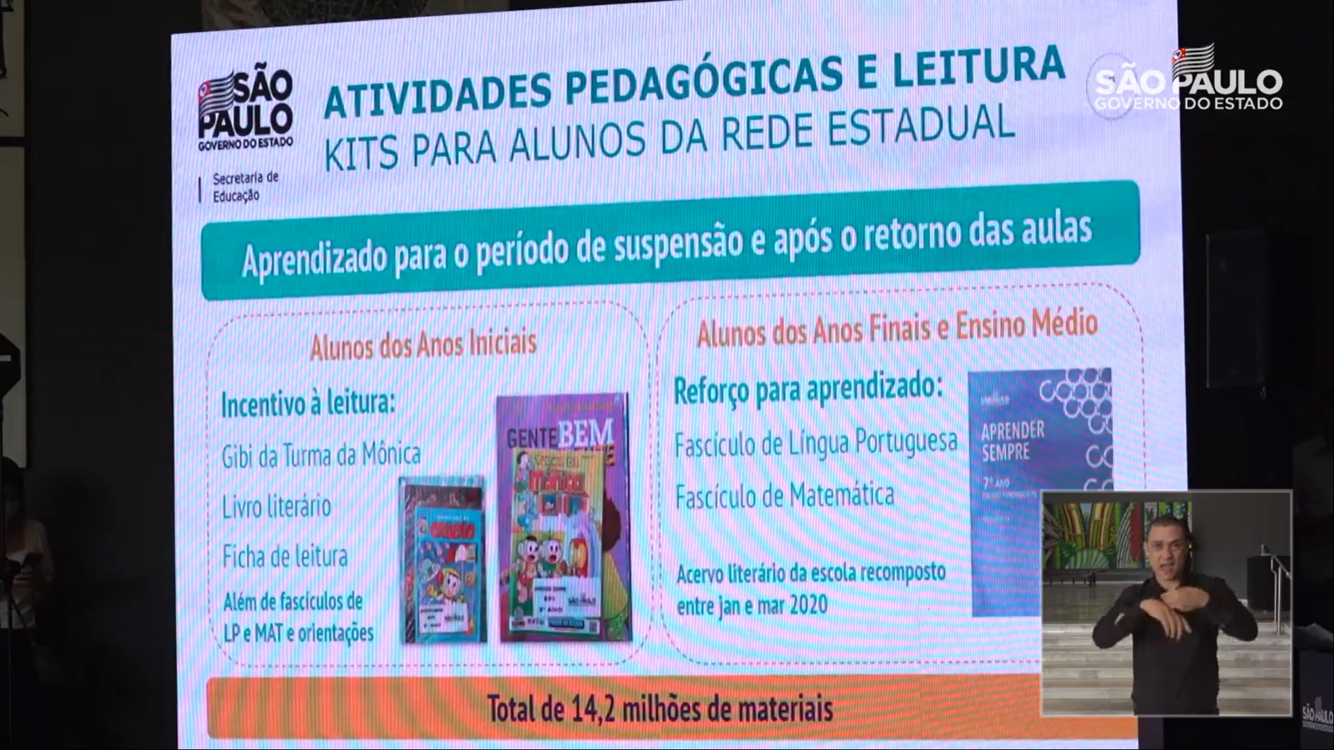 - Fundamental II e Médio: Fascículo de LP e MAT + Acervo literário da escola recomposto entre Janeiro e Março de 2020.