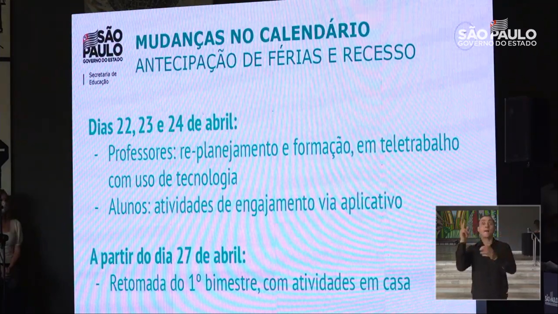 Pessoal, acompanhamos a Coletiva de Imprensa realizada no dia 16 de abril de 2020 com a presença do Secretário da Educação Rossieli Soares, onde o mesmo pontuou algumas informações relevantes para a Secretaria da Educação.