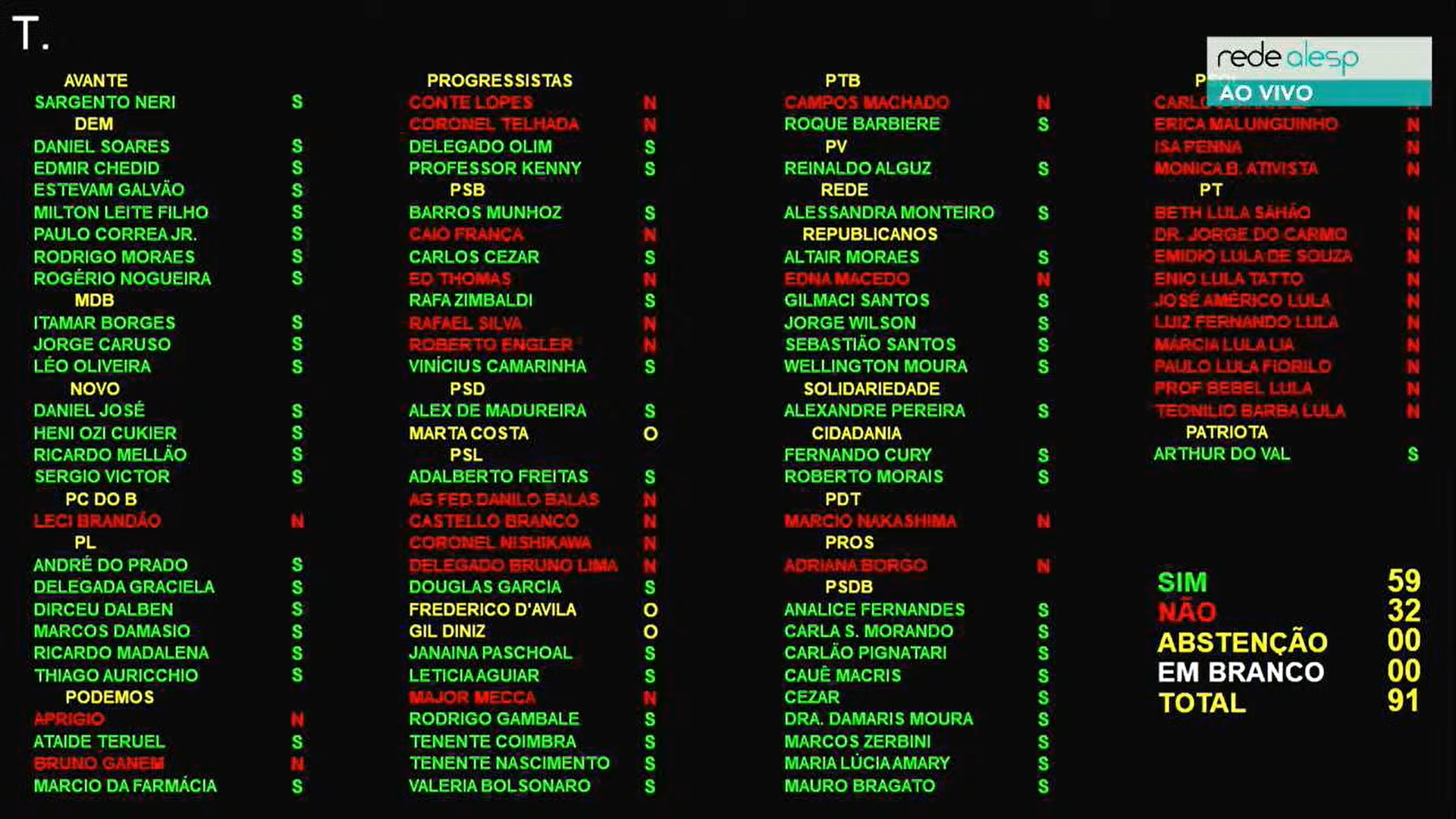 Segue abaixo o nome, partido e como votaram os deputados presentes na seção: