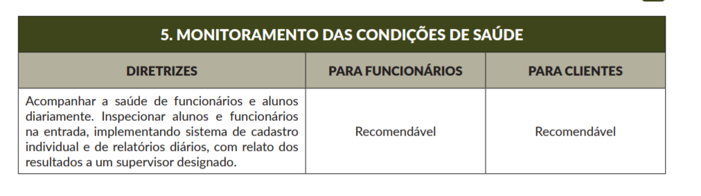 - Fase 5, azul: “normal controlado” – todos os setores em funcionamento, mas mantendo medidas de distanciamento e higiene