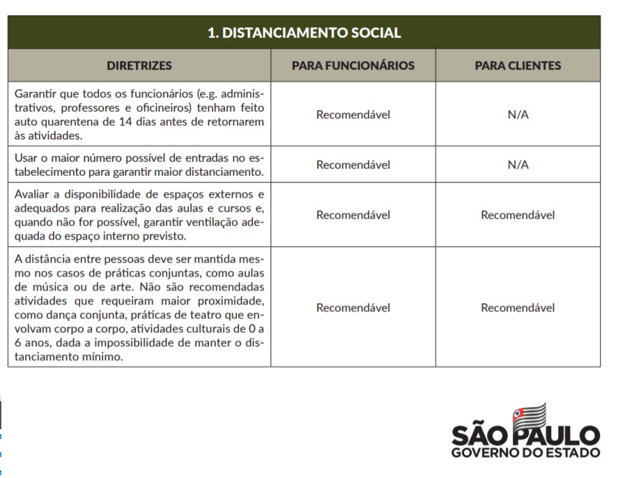 - Fase 5, azul: “normal controlado” – todos os setores em funcionamento, mas mantendo medidas de distanciamento e higiene