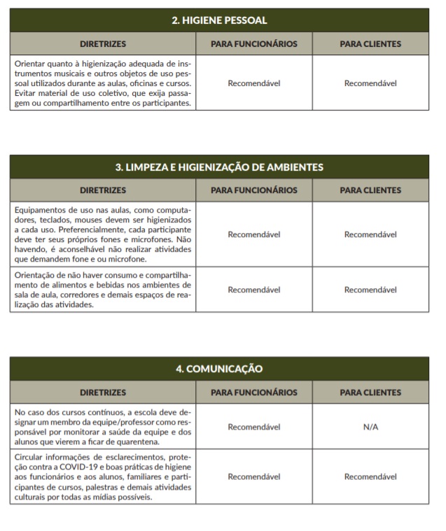 Foi disponibilizado protocolo para Escolas e cursos de formação cultural.