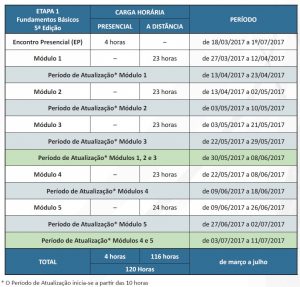 A primeira etapa será realizada no 1º Semestre de 2017. Segue o calendário: