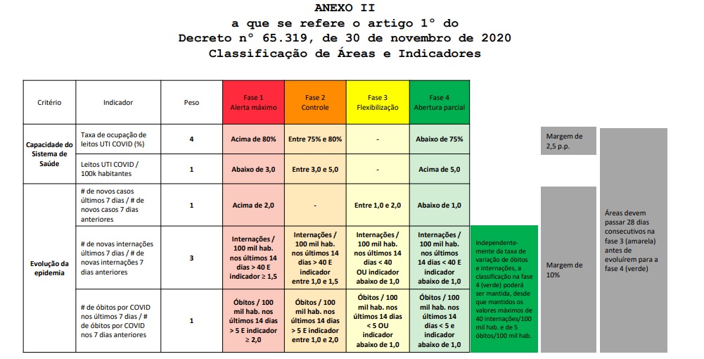 DECRETO Nº 65.319, DE 30 DE NOVEMBRO DE 2020 Altera o Anexo II do Decreto nº 64.994, de 28 de maio de 2020, que dispõe sobre a medida de quarentena de que trata o Decreto nº 64.881, de 22 de março de 2020, e institui o Plano São Paulo