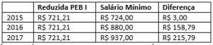 Identifica-se no quadro que o avanço do salário mínimo ocorreu durante dos quatro últimos anos, o que não ocorreu com o salário dos docentes no estado de São Paulo.