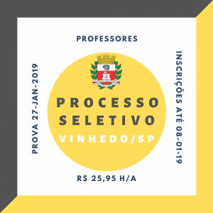 Prefeitura de Vinhedo em São Paulo abre Processo Seletivo para Professores de todas as disciplinas.