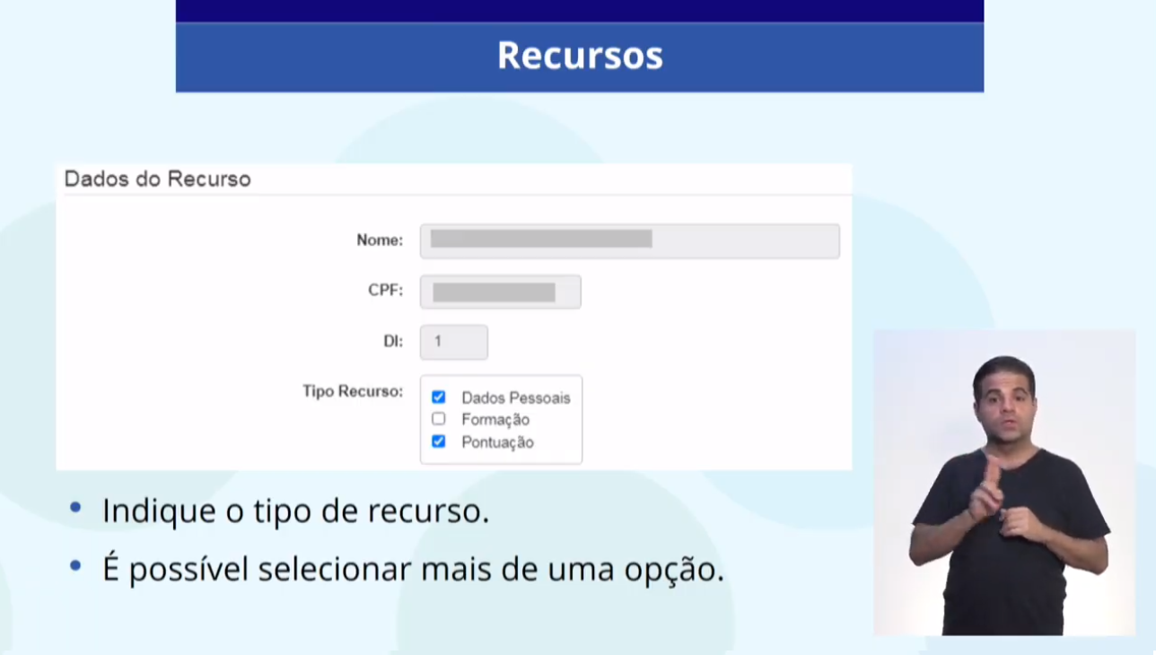 - A solicitação de recurso também será feita pela plataforma. O servidor deve solicitá-lo antes da confirmação da inscrição.