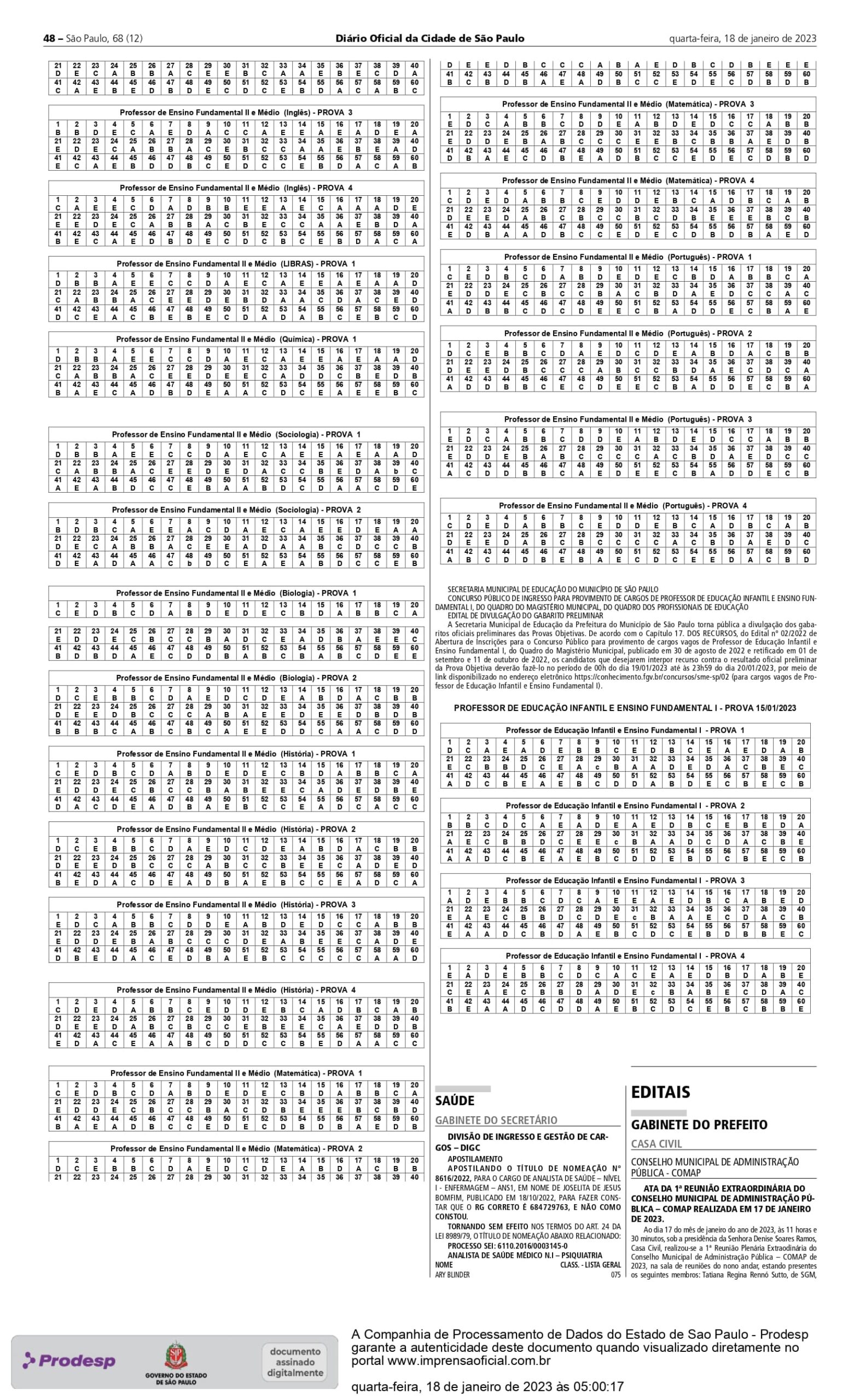 Confira os gabaritos da SME SP 2023 para as disciplinas, conforme segue: