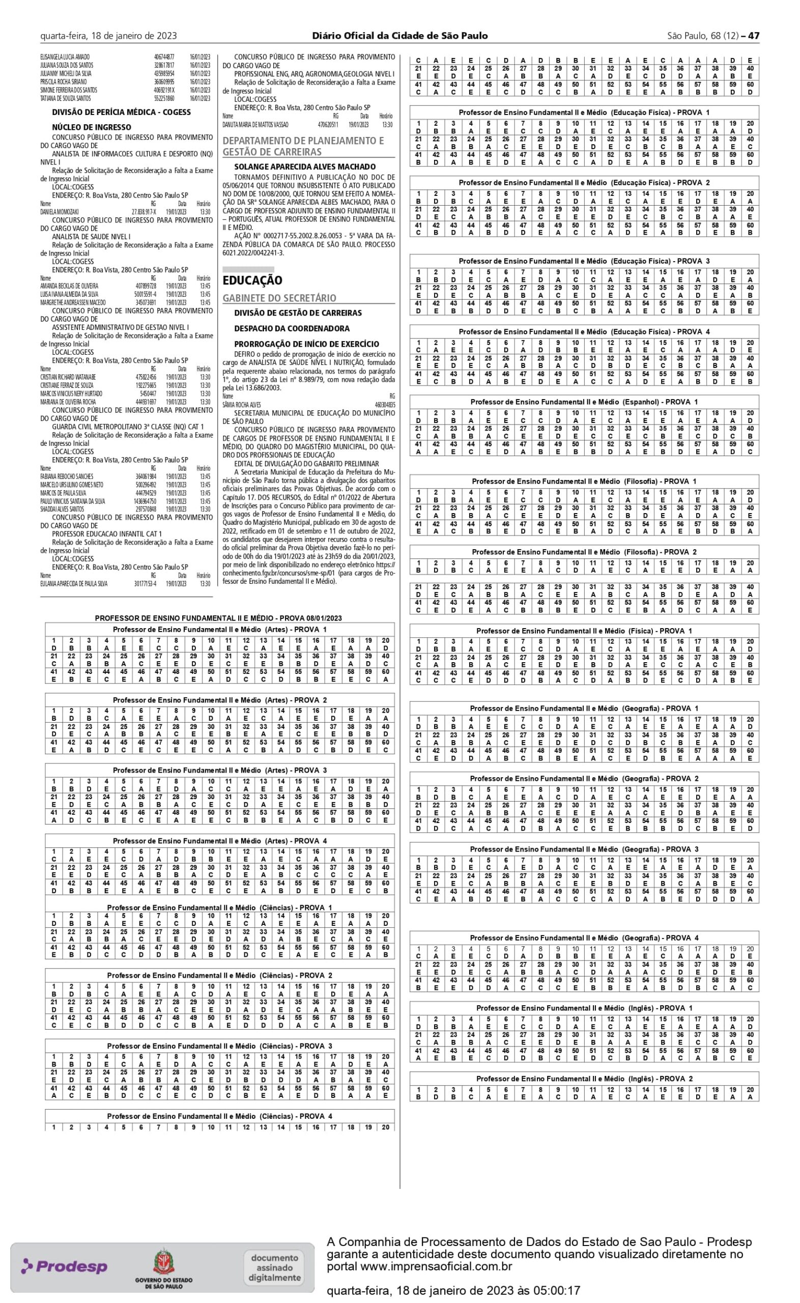Confira os gabaritos da SME SP 2023 para as disciplinas, conforme segue: