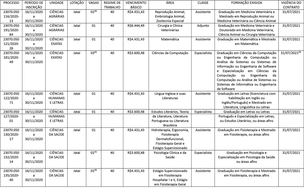 A Universidade Federal de Jataí por meio do Edital 06/2020 torna pública as inscrições para o processo seletivo para a contratação de professor substituto para diversas áreas.