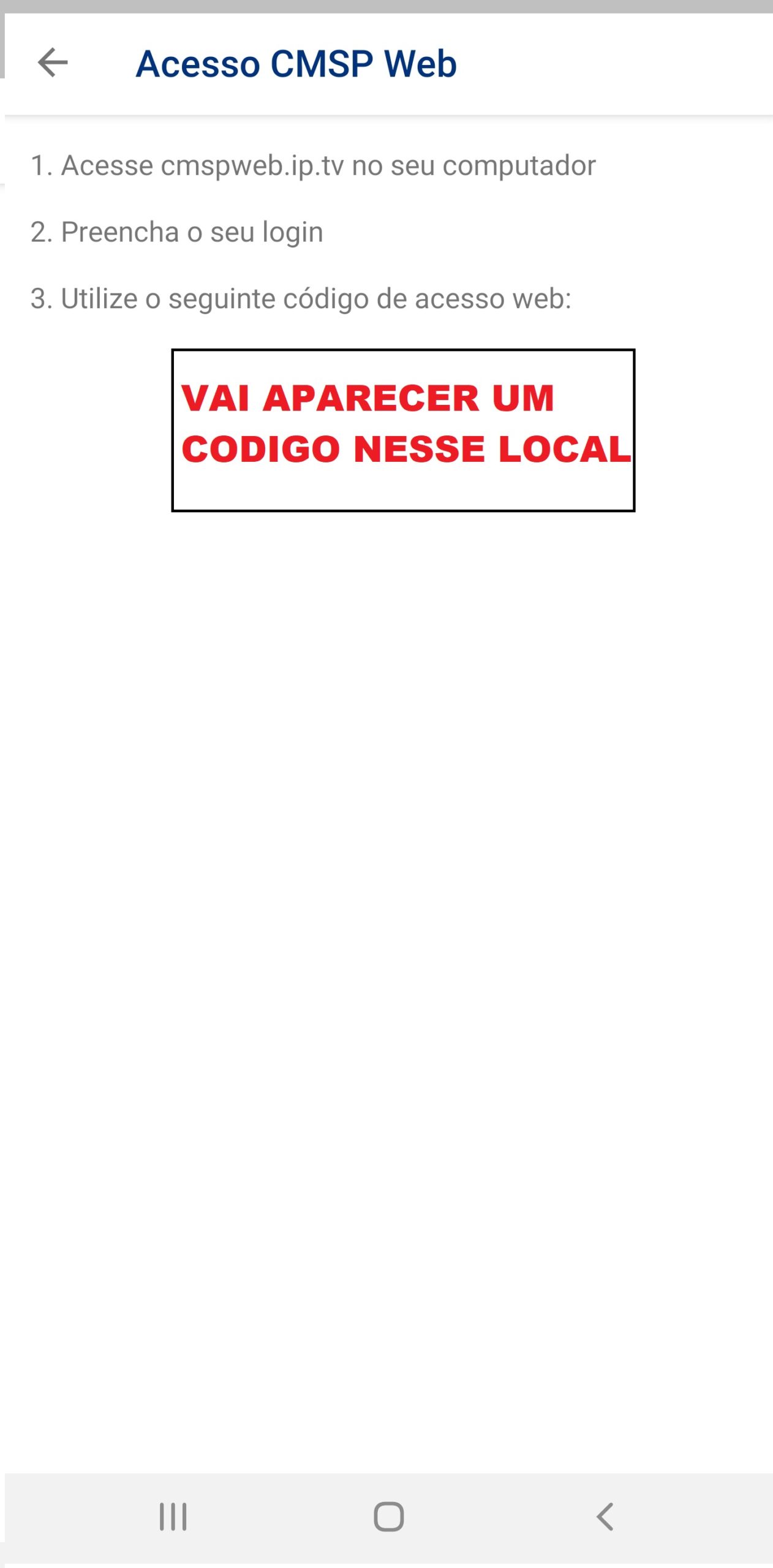 03. Vai aparecer uma página com um código de acesso. ANOTE-O.